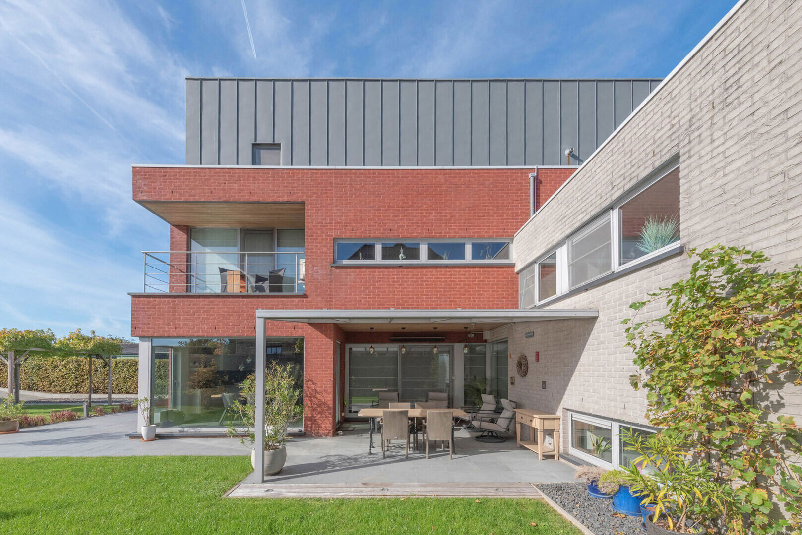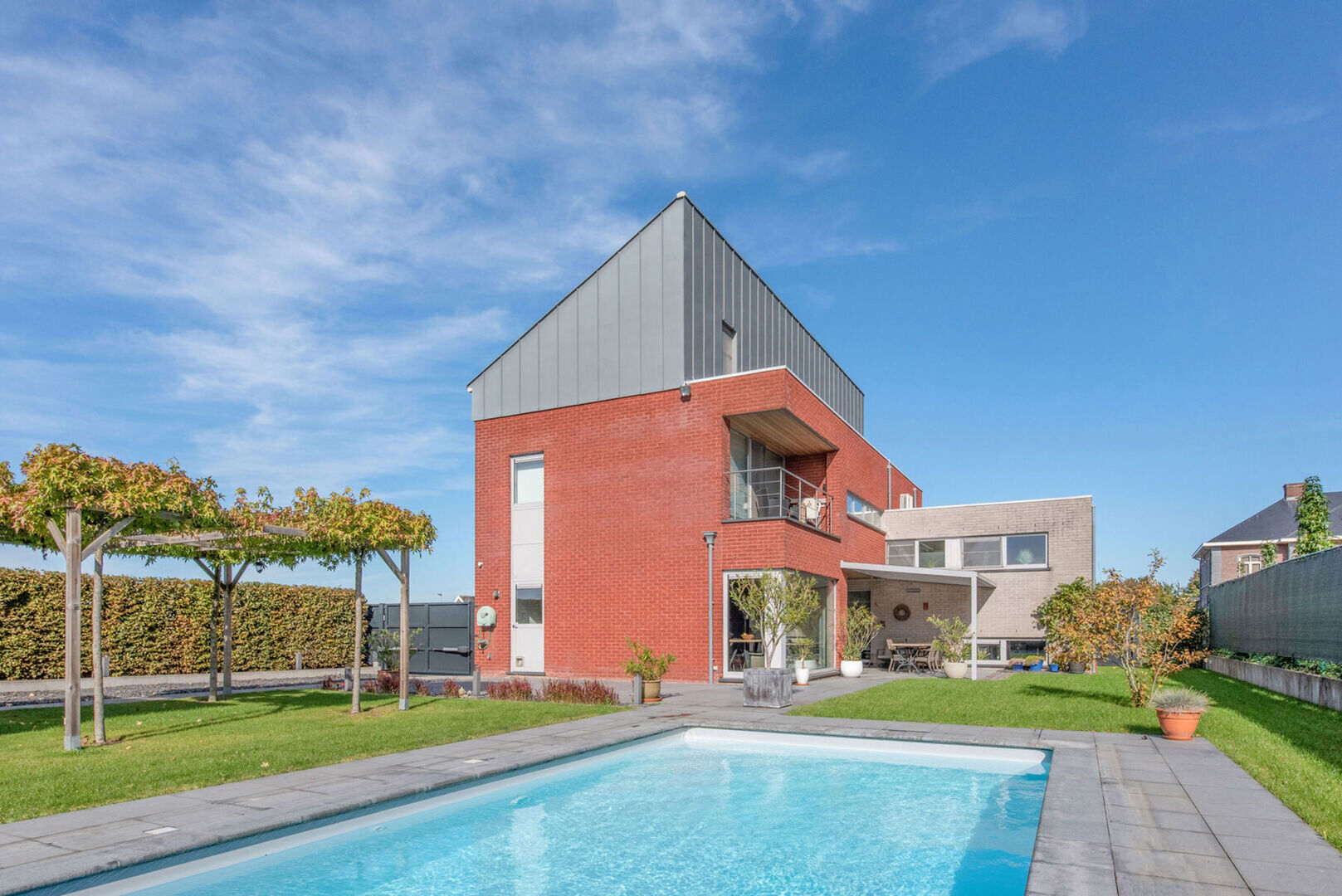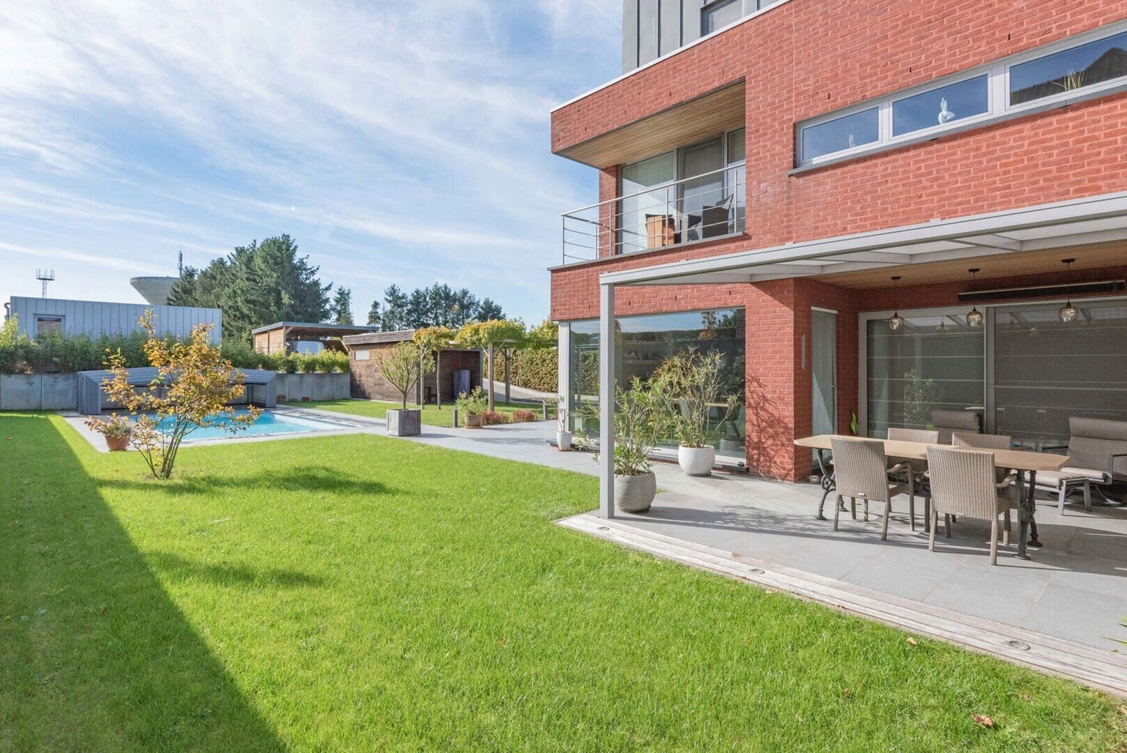Airco's, domotica, alarmsysteem, videofoon, regenwaterrecuperatie, deels elektrische zonwering, automatische poorten,...