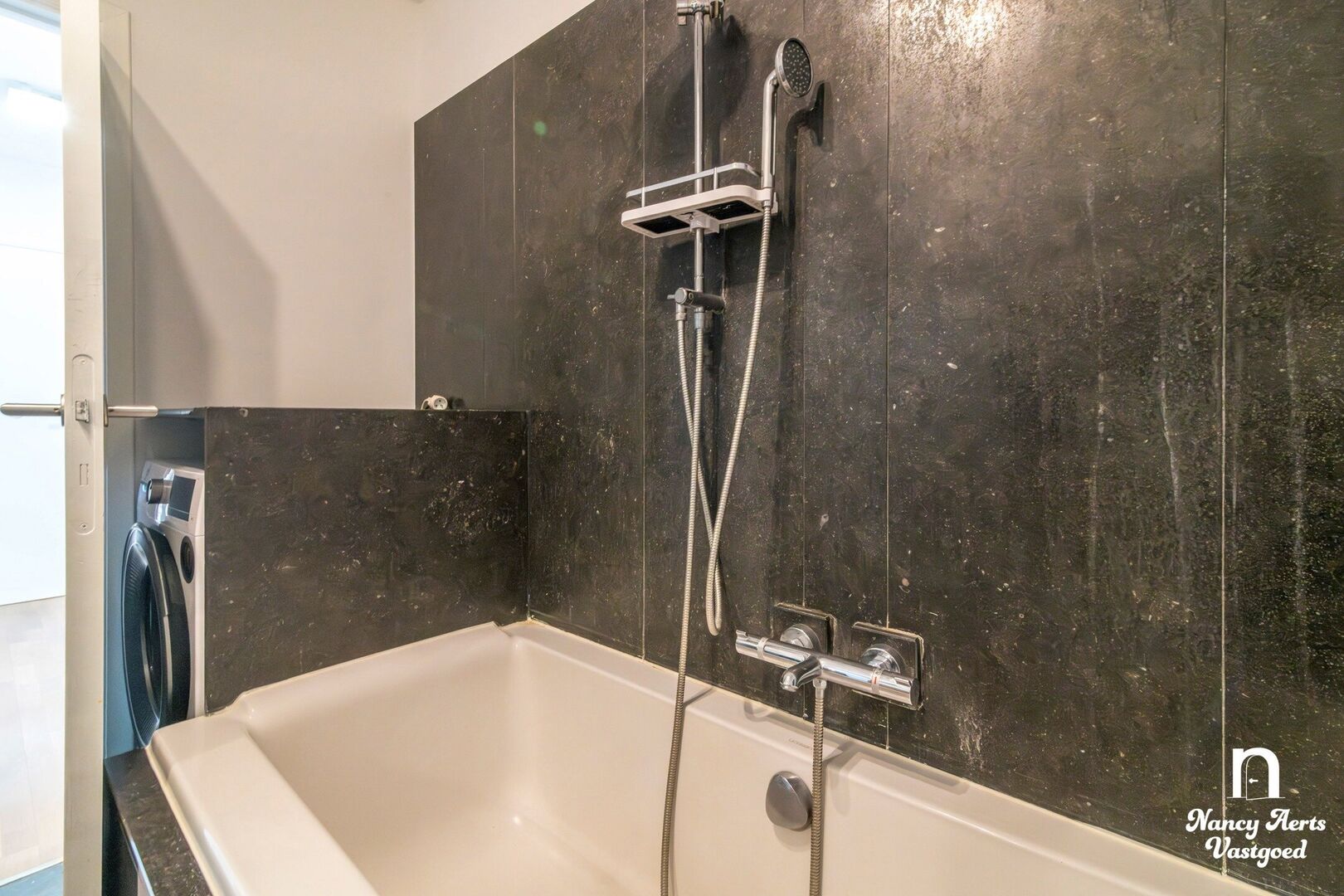 De badkamer is uitgerust met een ligbad en douchevoorziening en beschikt tevens over een aansluiting voor de wasmachine. Daarnaast is er een apart toilet aanwezig.