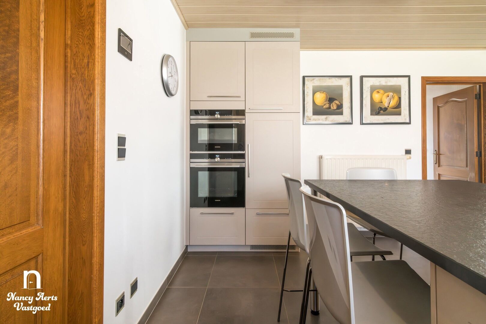 Aansluitend bevindt zich de vernieuwde leefkeuken, waar kwaliteit en gebruiksgemak hand in hand gaan. De keuken is afgewerkt met duurzame materialen, uitgerust met alle nodige toestellen en biedt opvallend veel opbergruimte. Het granieten werkblad en de praktische U‑vorm maken van deze plek een aangename en efficiënte werkruimte, met bovendien een geïntegreerd eetgedeelte.