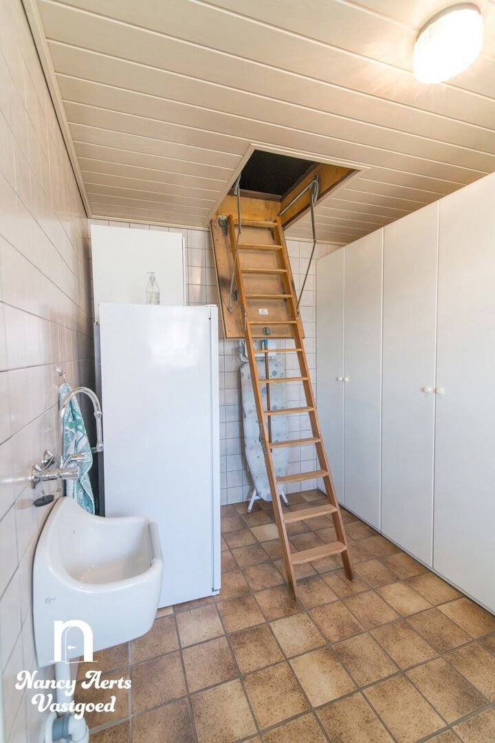 Via een luik in de wasberging kom je op de zolderverdieping, momenteel in gebruik als opbergruimte. Deze verdieping biedt echter het potentieel om verder afgewerkt te worden tot een extra woonlaag met bijkomende kamers. Er is voldoende plaats om een vaste trap te installeren, wat deze uitbreiding perfect haalbaar maakt.