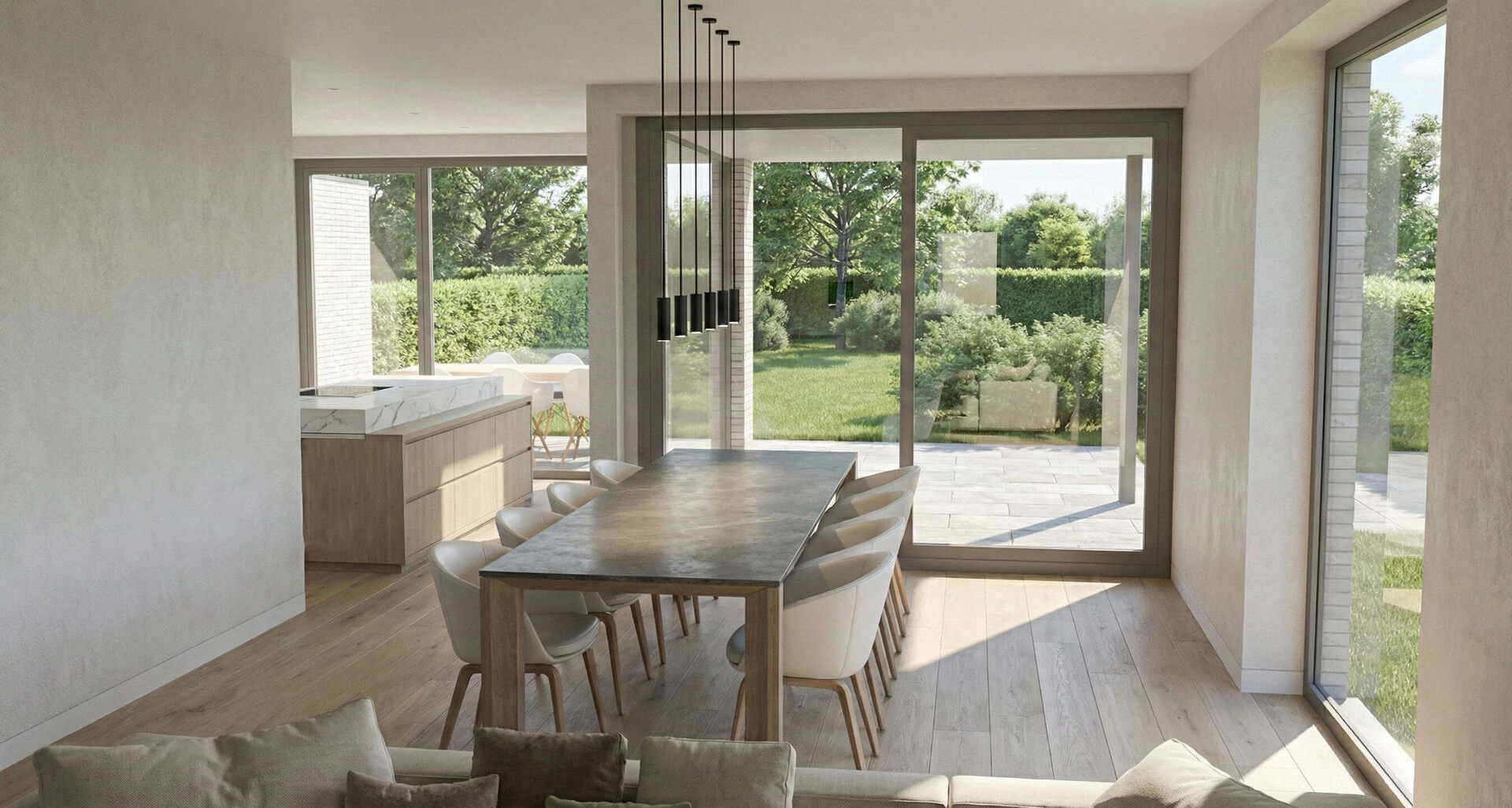 Deze halfopen woning wordt gebouwd volgens de BEN-normen en combineert moderne architectuur met warme, natuurlijke materialen. Het resultaat is een stijlvolle woning die perfect past in de groene omgeving. Dankzij doorgedreven isolatie, vloerverwarming, een warmtepomp en zonnepanelen woon je hier niet alleen comfortabel, maar ook bijzonder energiezuinig. De werken starten op 2 maart 2026.